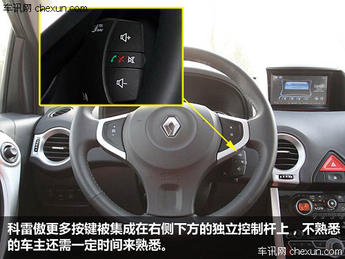 兩車的方向盤手工都還不錯,粗細適中,握在手里感覺很充實,而且都配有多功能控制按鍵,只不過科雷傲的方向盤還用真皮進行了包裹,不論是檔次感還是手感都要更好一些。