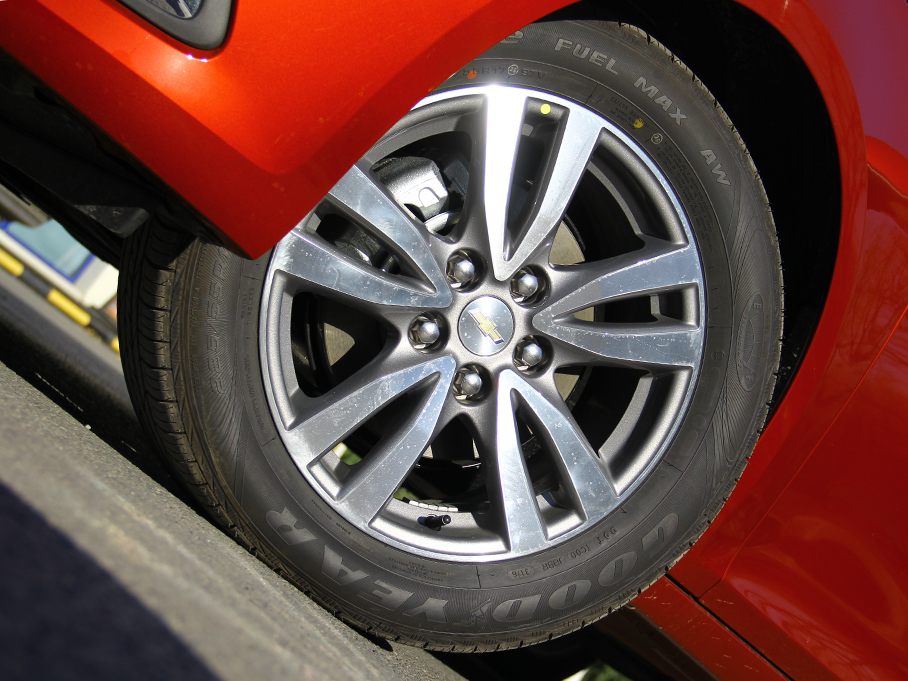 實拍車型配備17寸雙五輻鍍鉻輪圈,匹配型號為225/55的固特異安節輪系列輪胎。
